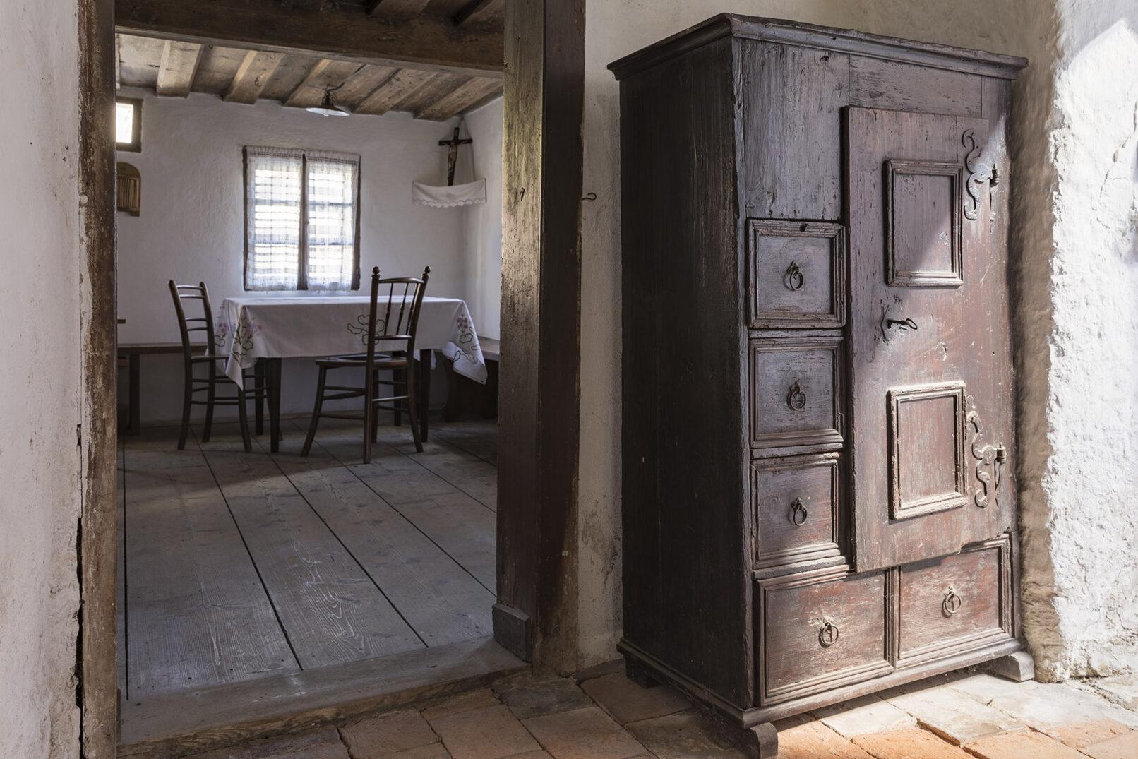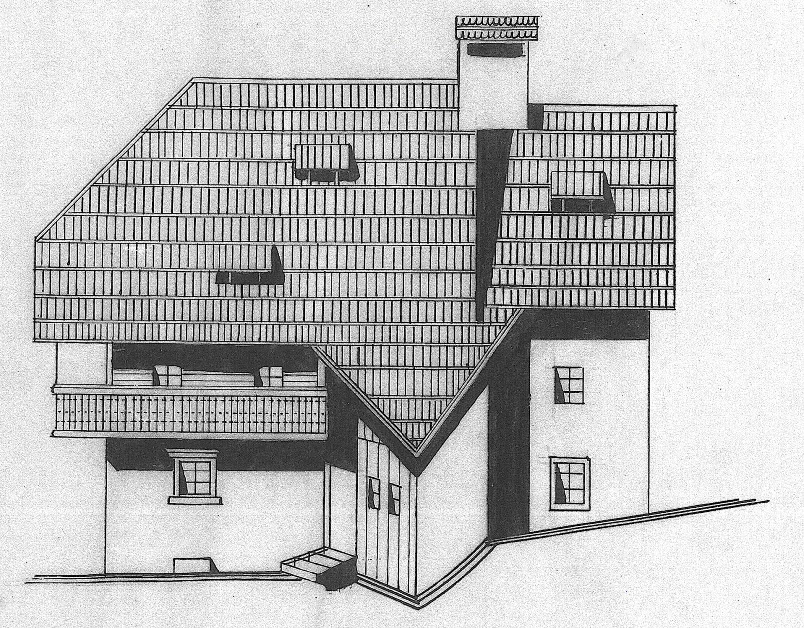 V 18. stoletju zgrajena hiša je imela pritličje s črno kuhinjo in klet na zahodnem delu. Po ohranjenih pričevanjih je bila v kleti kolarska delavnica, na odprtem lesenem ostrešju so sušili les, usnje in volnene nogavice. Pozneje so tudi v nadstropju uredili manjšo črno kuhinjo, vzdolž severne stranice in dela zahodne linije pa postavili lesen konzolni balkon – gank. Do ganka se dostopa po zunanjem polžastem stopnišču na južni strani hiše. Na zahodni strani so tudi vhodna vrata v pritličje in enoramno stopnišče ob zidu, ki vodi v klet. Prvotni glavni vhod v hišo je bil na nasprotni strani.